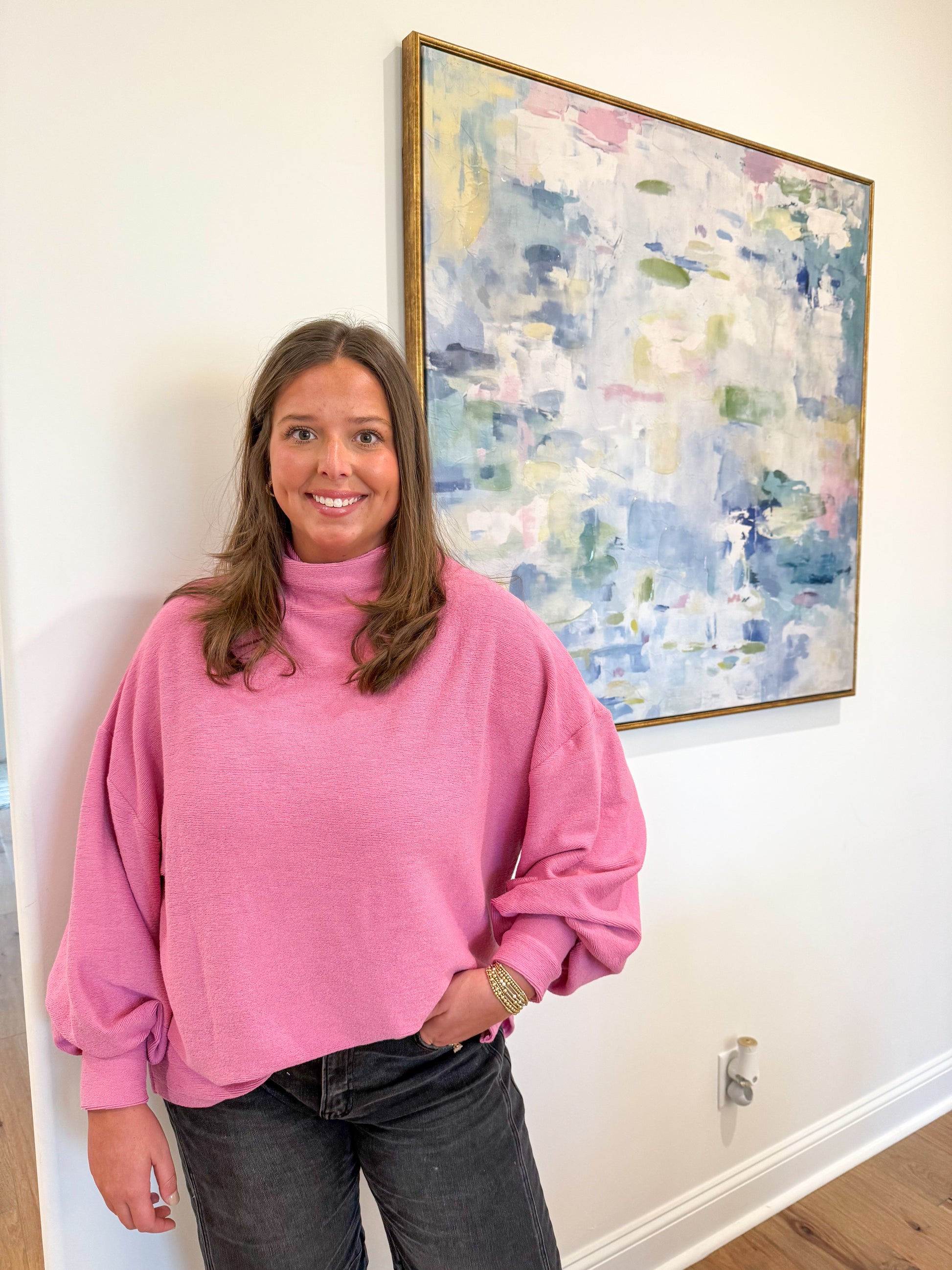 The easiest top to style! This top has a loose mock neck and is a light weight material. Pair it with leggings or jeans and you are sure to be trendy.