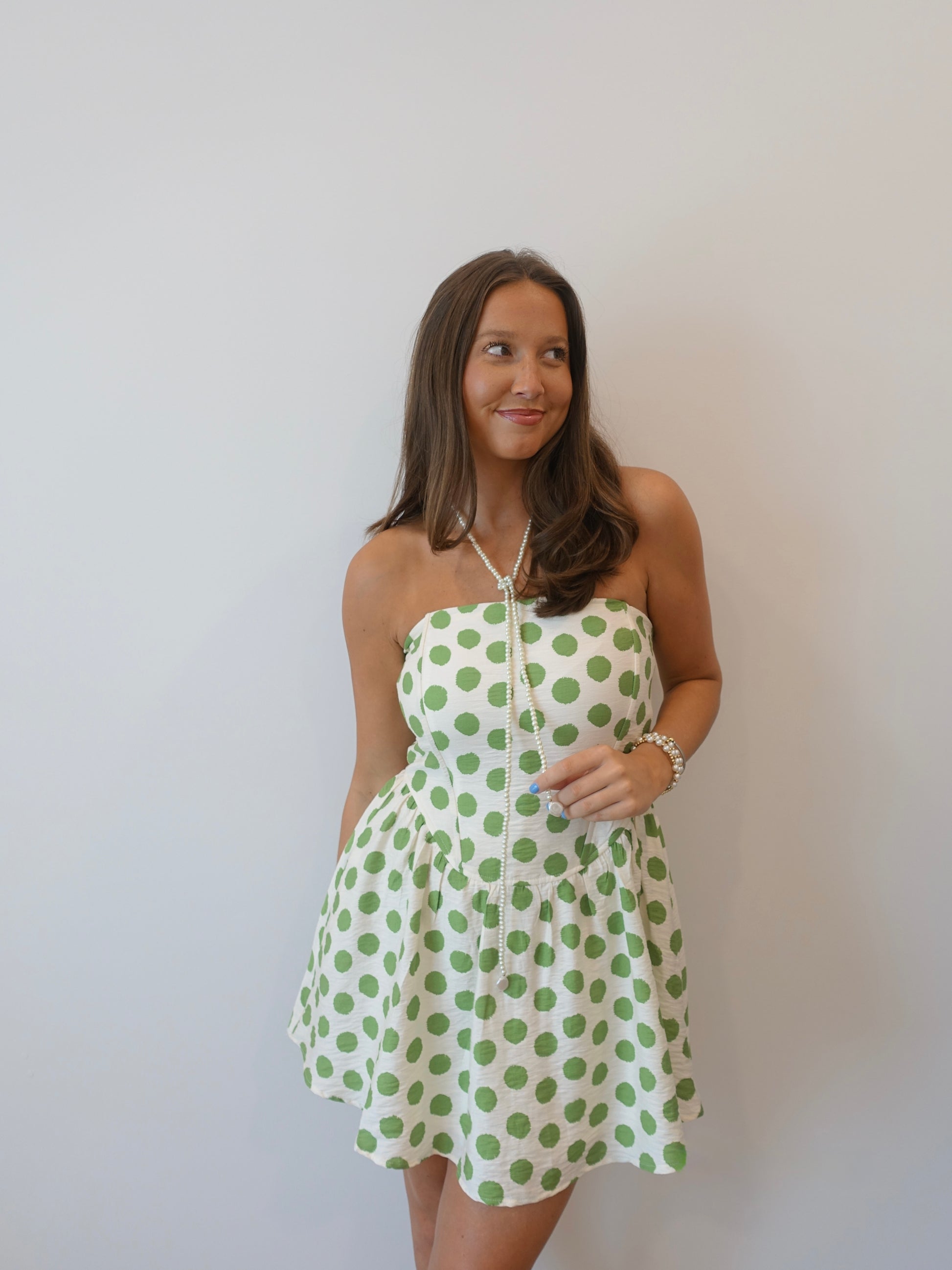 This show stopper mini dress features functional front pockets, side zipper, and a sweetheart neckline. It is the perfect mini dress to keep you right on trend.