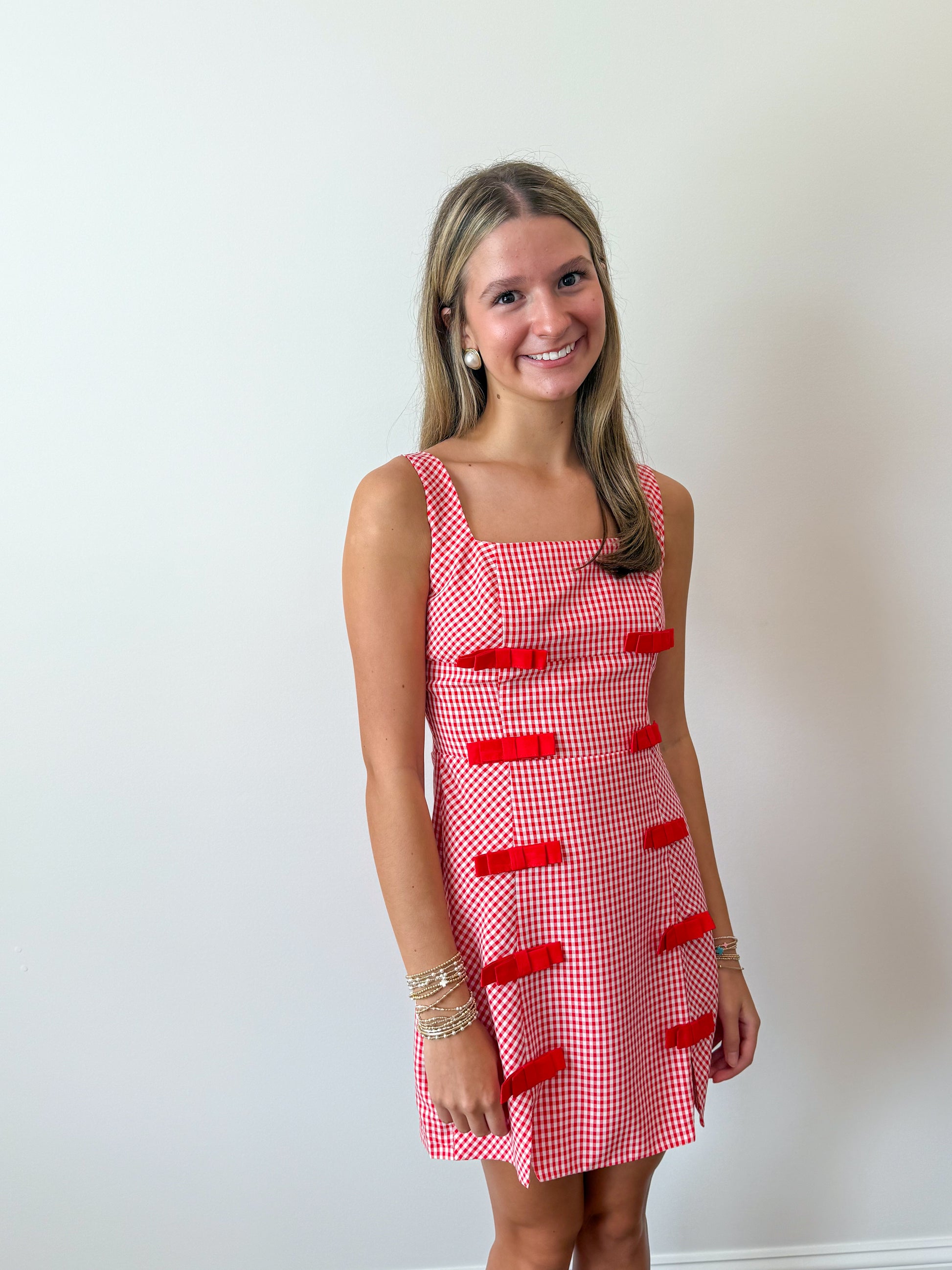 This gingham printed dress with the ribbon detail is just what you need this season! This dress included all the perfect details, including adjustable shoulder straps, smocking back panel, and zipper closure. This is the perfect dress to make a statement in.
